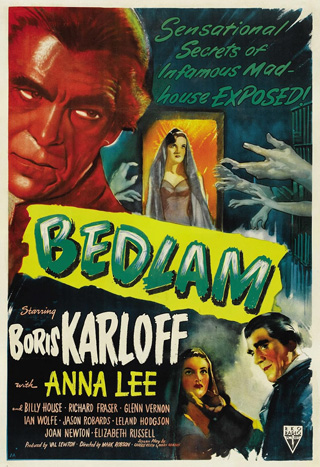 Boris Karloff stars in Bedlam on October 28