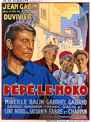PÉPÉ LE MOKO (1937): Parisian crook Pépé le Moko (the legendary Jean Gabin) thrives within Algiers's Casbah, where the locals protect him from the police. But a canny cop uses romance as bait when Pepe falls for a beautiful tourist. Exhibit A in the argument that the French were the first to do "noir." Dir. Julien Duvivier