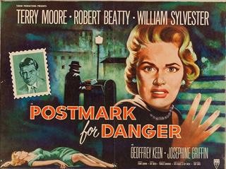 POSTMARK FOR DANGER (1955): When a journalist dies and the woman (Terry Moore) who was supposedly killed in the car accident with him reappears, his artist brother (Robert Beatty) takes up his investigation of a smuggling ring. Director Guy Green went on to direct the excellent Hammer Studios, Brit Noir The Snorkel (1958). Dir. Guy Green